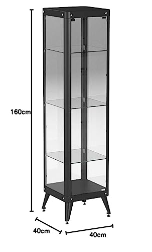Furniture 247 - Vetrina alta con telaio in metallo e 3 ripiani in vetro, nero