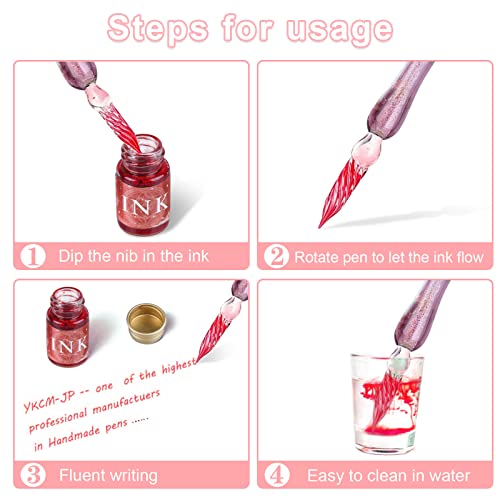 MATERIALI ECCELLENTI: le penne a immersione in vetro cristallo sono realizzate in vetro borosilicato di alta qualità. Il design raffinato del pennino a spirale aumenta l'assorbimento dell'inchiostro. Si prega di non usare una forza eccessiva durante la scrittura.