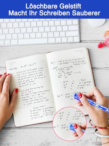 【0,5mm Asciugatura Rapida Penne Gel】Le penne cancellabili per scuola elementare hanno un pennino fine per una scrittura fluida e l'inchiostro roller si asciuga rapidamente in poco tempo, così il disegno e la scrittura si asciugano velocemente senza macchiare le mani o la carta. Questa penne può mantenere i vostri libri puliti e ordinati.