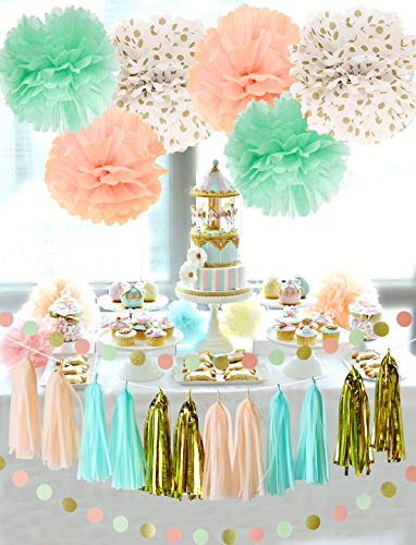 Furuix 20PCS Peach Mint pois Gold Tissue pom pom Flower pompon di carta per feste palle di carta carta artigianale carta appesi pom wedding party Favors fiore nappa pois carta ghirlanda cerchio ghirlanda per Baby Shower