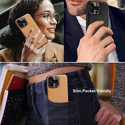Furwabo Custodia in Pelle PU Vintage per iPhone 13, Cover Protettiva per Fotocamera in Metallo, Custodia Antiurto Protettiva Antigraffio Slim Classic Business per iPhone 13 (Nero)