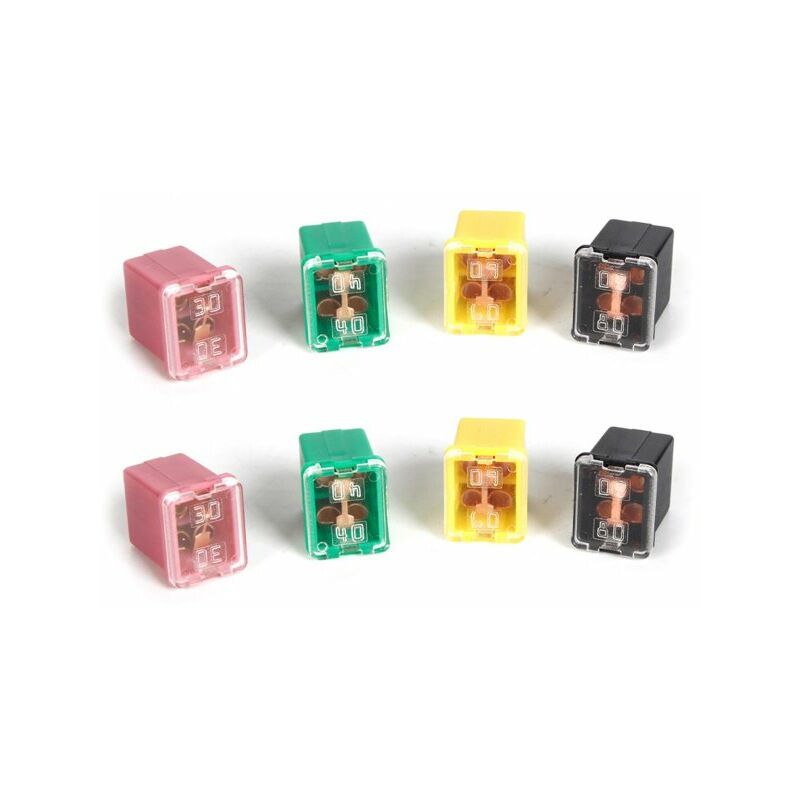 Fusibili a Basso Profilo Forma Jcase Quadrata: Questi fusibili sono progettati con una forma Jcase quadrata e un profilo basso, offrendo una soluzione compatta e moderna per proteggere i circuiti elettrici in auto, moto e camion. Ampia Varietà di Valori di Corrente: Il kit include una selezione diversificata di fusibili con valori di corrente di 30A, 40A, 60A e 80A, fornendo una soluzione completa per diverse esigenze di alimentazione nei veicoli. Adatti per Diverse Applicazioni: Grazie alla loro varietà di valori di corrente, questi fusibili sono adatti per una vasta gamma di applicazioni automobilistiche, offrendo protezione affidabile per circuiti elettrici di diversa potenza. Contenuto del Kit: Ogni kit contiene 2 fusibili per ciascun valore di corrente, garantendo una fornitura completa e pronta per l'uso in caso di necessità di sostituzione o di aggiornamento dei fusibili. Facile Identificazione: Con valori di corrente chiaramente indicati (30A, 40A, 60A, 80A), la facile