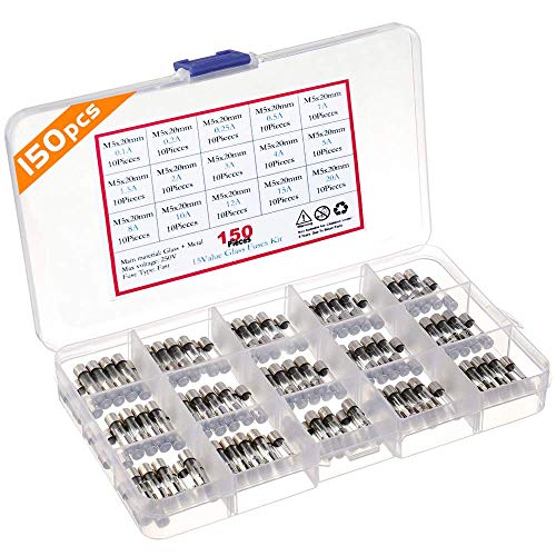 Fusibili Vetro 150 Pezzi, 250V Vetro Soffiato Rapido Fusibili Fast-Soffiare Vetro Fusibili Assortiti Kit 250V, 0.1 0.2 0.25 0.5 1 1.5 2 3 4 5 8 10 12 15 20A nel una Scatola di Plastica Trasparente