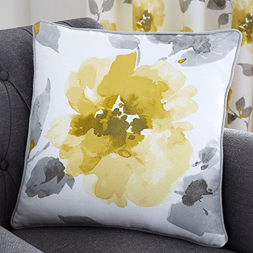 Un delicato acquerello femminile giallo ocra stampa floreale con bordo grigio bordo. Questi cuscini sono realizzati in 100% cotone e dispongono di una chiusura a cerniera in modo che le federe possano essere rimosse per una facile pulizia