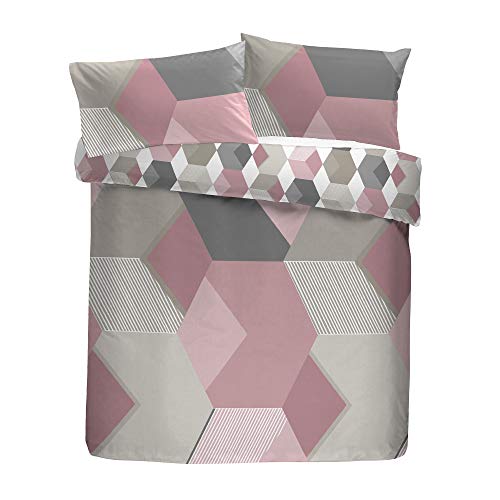 Fusion - Hexagon - Set copripiumino facile da pulire - Letto king size in rosa