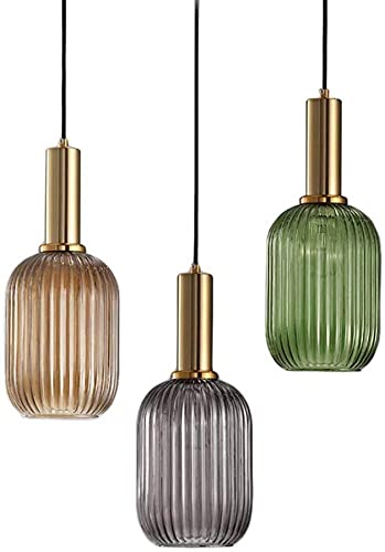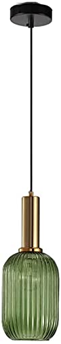 Fusmaker Lampada A Sospensione Moderna in Vetro Soffiato A Mano E Ottone Lampada Testa Singola E27 Plafoniera Per Camera Da Letto Cucina Corridoio Soggiorno,Dark green,A