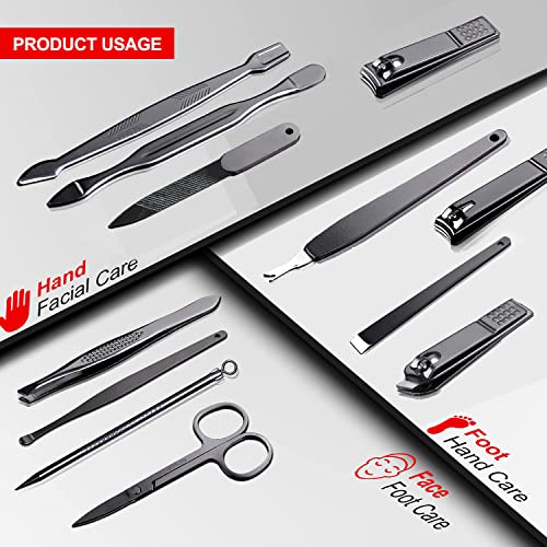 【Scenari applicativi di ampio respiro】 Questo set per manicure è adatto per la manicure professionale e domestica, ideale per la cura di piedi, mani e viso. Il set per manicure e pedicure comprende un tagliaunghie per unghie di mani e piedi, un pelapatate, un taglia cuticole, un taglia unghie di piedi, una lima per unghie, una pinzetta a forma di V, pinzette per sopracciglia e forbici multiuso, un ago per punti neri con rimuovi anello e un cucchiaio per tappi per orecchie.