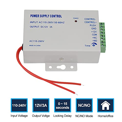 [5] Alta qualità della serratura elettrica di tipo NC, la porta sarà bloccata quando l'alimentazione si accende, aperta quando l'alimentazione si spegne. Adatto per porta di legno, metallo. Può impostare il tempo di apertura della porta di 0-15 secondi sul regolatore di alimentazione DC12V 3A.