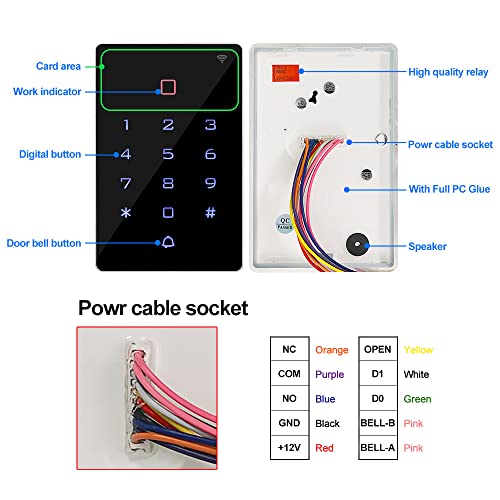 [4] Ha WG26, WG34 Wiegand interfaccia, può essere collegato a un lettore di schede aggiuntivo. Ha un pulsante del campanello, può essere collegato a un campanello aggiuntivo. Ha retroilluminazione blu, le cifre possono essere viste al buio.