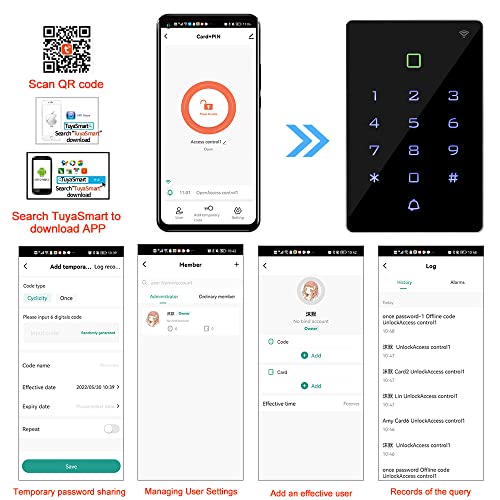 [2] Supporta WiFi Tuya. È possibile utilizzare l'APP Tuya per aggiungere utenti, aprire la porta e visualizzare i record di sblocco. E' molto comodo! Inoltre, è possibile impostare 01-99 secondi tempo di apertura della porta sul dispositivo.