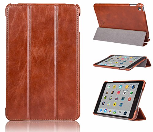 FUTLEX Custodia Cover Case Compatibile con iPad Mini 4 (2015) in Vera Pelle e in Stile Vintage - Marrone - Funzione Standby/Riattiva Automatica - 100% Vera Pelle