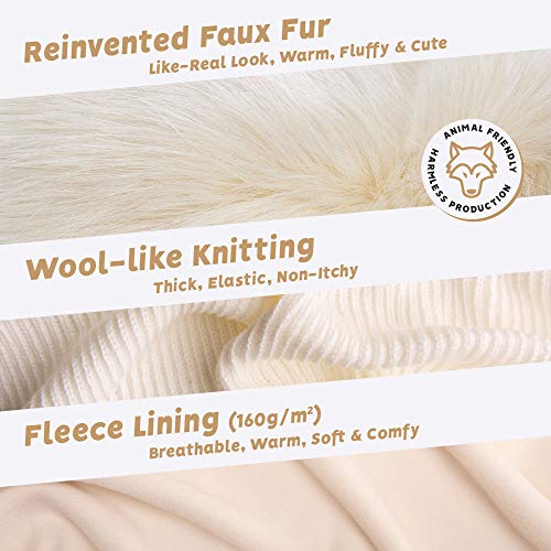 Futrzane Mongolo Cappello Ecopelliccia Pom Pom Donna di Inverno (Écru)