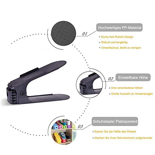Design: realizzati in plastica ABS di alta qualità e antiscivolo con fantastica aderenza per le suole delle scarpe, questi organizer possono contenere qualsiasi scarpa di ogni stile e dimensione. Troverete a colpo d'occhio le vostre scarpe, che siano pantofole o sandali, scarpe da ginnastica o con i tacchi alti.