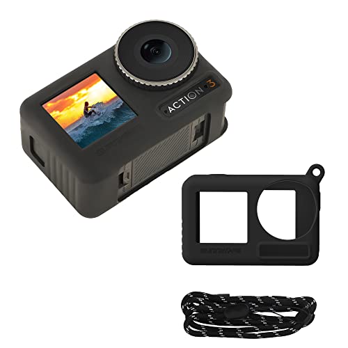 Fututech Custodia protettiva in silicone e cordino per DJI Osmo Action 4 3 Protective Cover per Action Camera Anti-Graffi Anti-Polvere Protective Cover (nero)