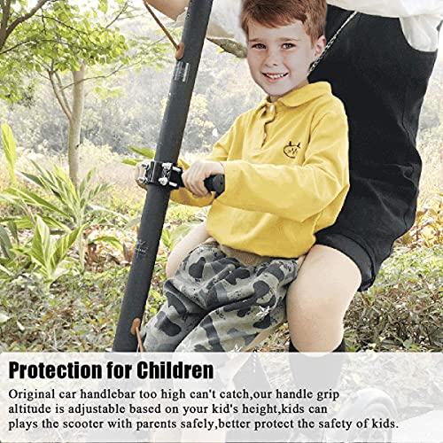 - Posizione regolabile. Regolare la posizione della maniglia in base all'altezza del bambino per risolvere il problema che il bambino non può raggiungere la maniglia originale dello scooter. Gli adulti e i bambini possono utilizzare lo scooter elettrico contemporaneamente per garantire la sicurezza del bambino.