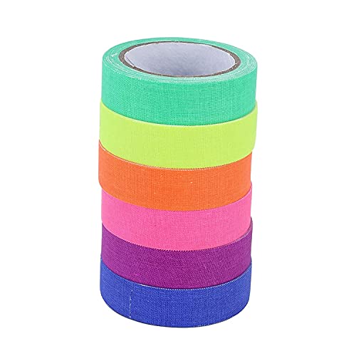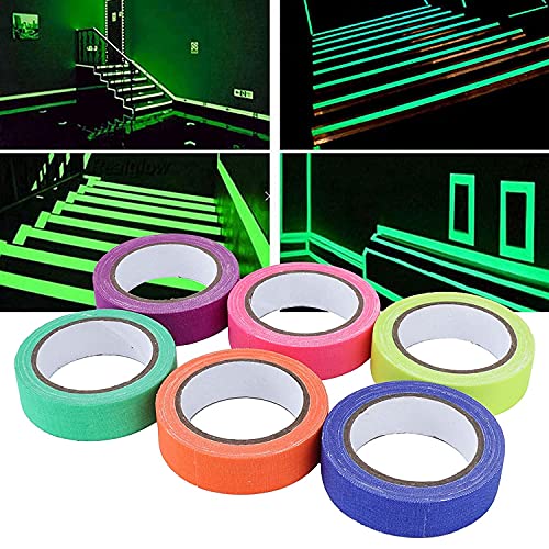6 pezzi di nastro fluorescente: un rotolo di nastro fluorescente ha 6 colori, colori diversi per le tue esigenze. La fascia stessa non si illumina, risultati in luce UV/.