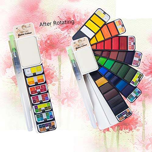 Portatile: 4 tipi di specifiche disponibili, con 1 spazzola per acqua ricaricabile gratuita, 180 colori ad acquerello rotante Set adatto in tasca, borsa o zaino.