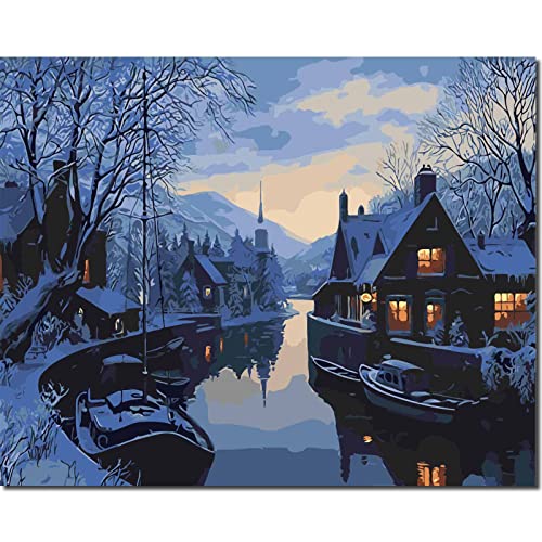 Fuumuui Dipingi con i Numeri Adulti e Bambini Principianti Include Pennelli e Colori Acrilici 40 x 50 cm - Paesaggio, Inizio dell'Inverno