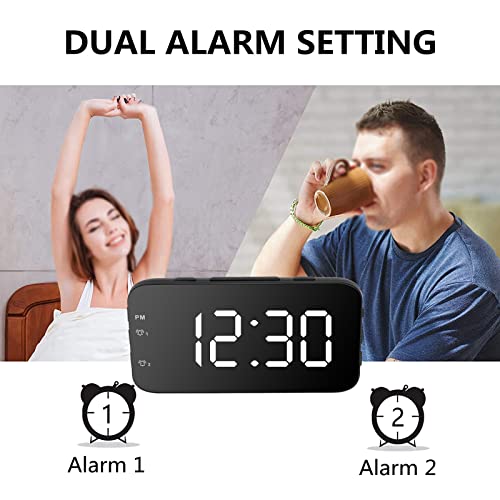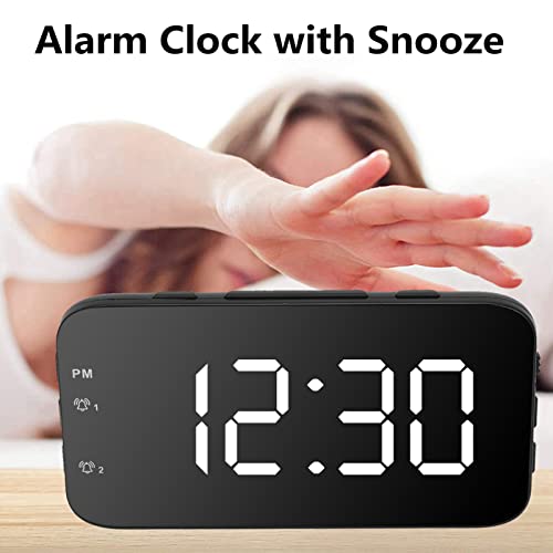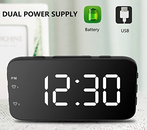 Fuwinkr Sveglia Digitale a LED con Snooze Alarm Orologio Intelligente Automatico Orologio da Tavolo Portatile Doppia Alimentazione Orologi da Comodino per Camera da Letto scrivania(Bianca)