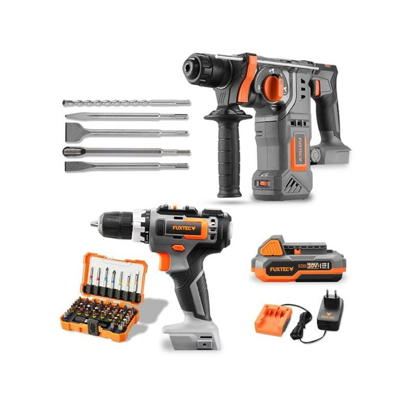 NUOVO SET PowerTool con avvitatore a batteria & Trapano tassellatore perforatore il pacchetto completo per ogni appassionato di fai da te Avvitatore a batteria 20V FX-E1BS20 Semplifica la tua vita con la nuova linea di batterie da 20V di FUXTEC! Scopri un modo facile, efficiente e silenzioso di lavorare. La nostra funzione " una batteria per tutti" ti permette di entrare nel mondo delle batterie da giardino di FUXTEC in modo conveniente e pratico. La linea 20V offre una vasta gamma di attrezzi da giardino e una nuovissima collezione di attrezzi fai-da-te. L' avvitatore a batteria da 20V di FUXTEC è leggero e silenzioso, ma abbastanza potente per gestire i tuoi piccoli lavori. Caratteristiche: Peso leggero di soli 1,4 kg (con batteria da 2Ah) 2 direzioni di marcia per massima versatilità Controllo della velocità variabile per adattarsi a ogni esigenza 18 impostazioni di coppia per precisione e controllo ottimali Velocità massima di 1300 giri/min per prestazioni elevate Bassa rumorosità