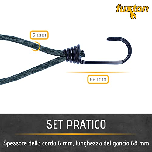 Fuxton 10 elastici con gancio corto (verde oliva 130 mm) per teloni, tende, barche, reti, striscioni, ganci estensibili, cinghie di tensione con gancio corto, tenditore in gomma, ganci di serraggio