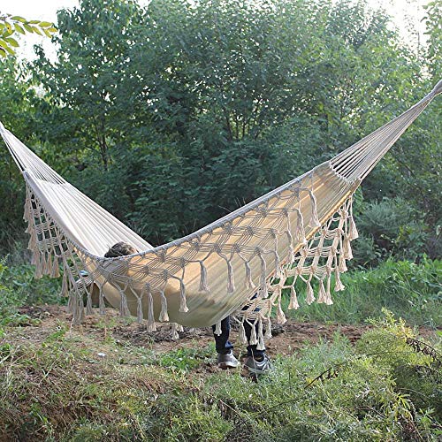 FUYIO Amaca Boho Grande Frangia Brasiliana macramè 2 Persone Doppia Deluxe Amaca Altalena Sedia Sedia appesa al Coperto Amaca Altalene, Amaca Nera