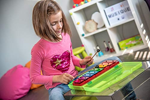 GIUSTEZZA DELLE NOTE: Questo strumento musicale per bambini è composto da 8 lame colorate. Ogni colore corrisponde una nota da Do3 a Do4. Tutte le note sono separate e perfettamente sintonizzate.