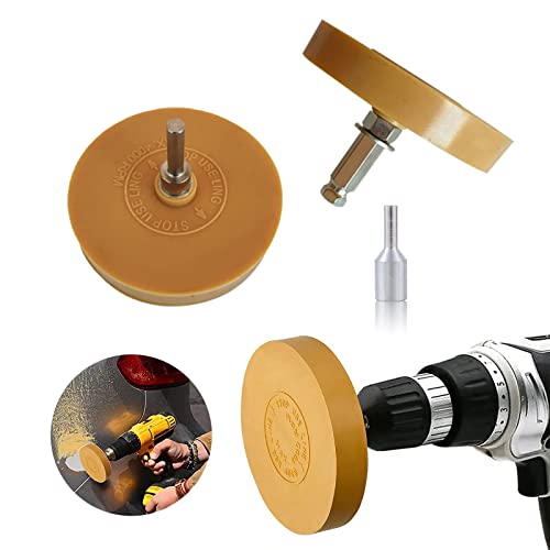 FUZITONG CAI Ruota per Rimozione Adesivi Gomma, Gessato Decalcomania Rimozione per Graffi di Strumenti di Rimozione di Adesivi per Auto Gomma Gialla Trapano per Dischi in Vinile
