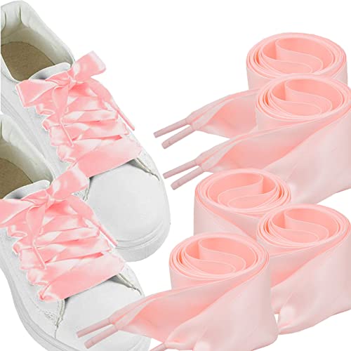 Carino e bello: i lacci a nastro sono rosa, lisci e legati in una bella forma a fiocco per aggiungere brillantezza alle tue scarpe e sono accessori di moda ideali e punti salienti della moda.