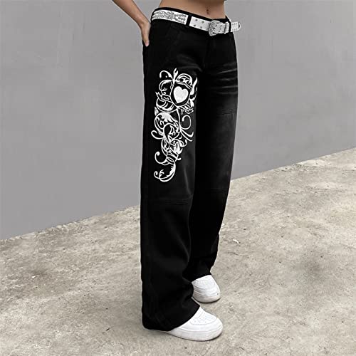 FUZUAA Donne Y2K Baggy Denim Hosen Stile Coreano Harajuku Hot Mom Denim Jeans Grunge Vintage Taschen Niedrige Taille Skinny Flare Pants 20s Retro Cargo Pants (Color: Black, Size: S)
