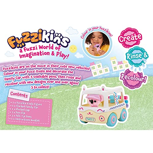 Colora il tuo Fuzzi Koala e decora la Family Car con 3 penne lavabili, quindi risciacqua e ricolora con nuovi disegni più e più volte!