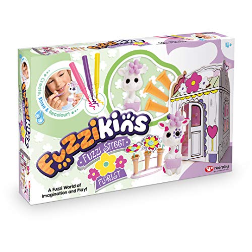 Il set Fuzzi Street Fiorista Craft & Play viene fornito con un proprietario di un negozio di giraffe, un negozio di fioraio e un sacco di accessori per realizzare, colorare e personalizzare