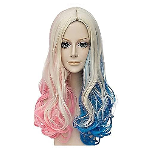 FVCENT 26 pollici parrucca di carnevale cosplay delle donne di colore misto ricci lunghi sciolti, Harley Quinn cos (mescolare)