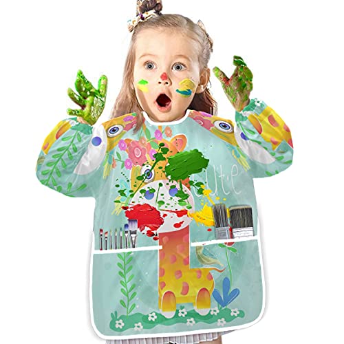 FVFV Giraffa Simpatico Cartone Animato Grembiule da Pittura Bambin Scuola Grembiulino Maniche Lunghe per Ragazzi Ragazza 1-6 Anni