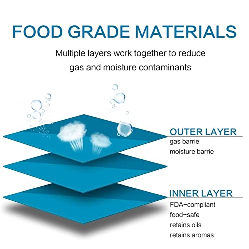 Estendi il tempo di conservazione degli alimenti: i sacchetti sigillabili per la conservazione degli alimenti con uno strato di foglio di alluminio possono impedire che il cibo venga esposto all'aria, all'ossidazione, alla forte resistenza alla luce, all'impermeabilità e all'umidità, resistenza alle forature. La busta in mylar può prolungare il tempo di conservazione degli alimenti