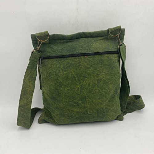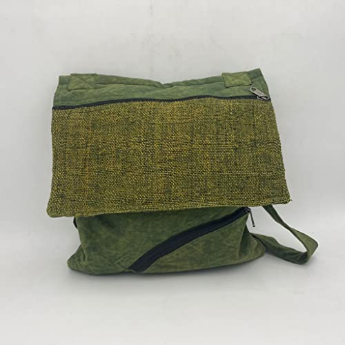 Fwosi Borsa a tracolla in canapa - Borsa a tracolla unisex per uomo e donna - Borsa a tracolla leggera - 3 scomparti, cinturino regolabile, chiusura con cerniera - Fatto a mano in Nepal, Verde