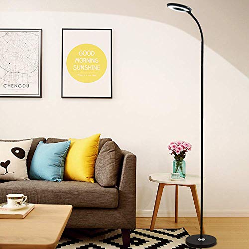 FWZJ Lampada da Terra Moderna, Lampada da Lettura per la Cura degli Occhi con Collo di Cigno Flessibile, Interruttore del Cavo, 2 Temperature di Colore, Lampada da Terra in Metallo Nero per soggi