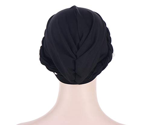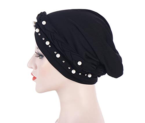 Fxhixiy Donne Hijab Perline Perla Treccia Turbante Cappello Testa Sciarpa Cancro Chemo Berretti Bandana Headwrap Cap, nero, taglia unica