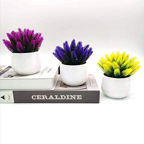 Fycooler Set Mini Piante Artificiali Verdi, Viola e Bianche (4pz)- Piante Finte da Esterno/Piante Finte da Interno Design per Casa, Ufficio, Bagno, Cucina, Giardino - Piante Decorative Artificiali
