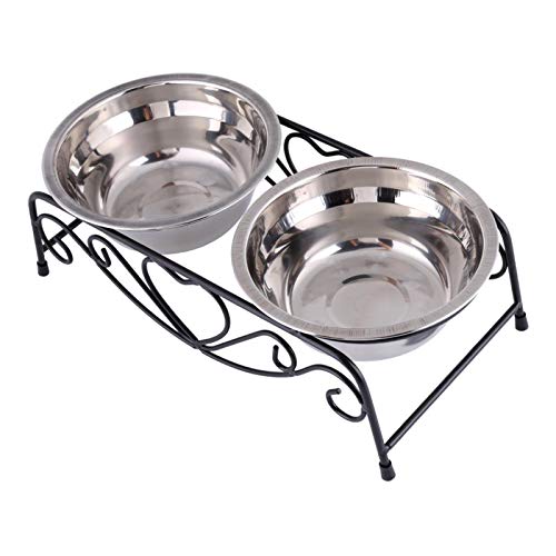 Fydun Doppia Ciotola per Alimenti per Animali Domestici, Doppia Ciotola in Acciaio Inossidabile per Cibo per Gatti con Supporto in Ferro