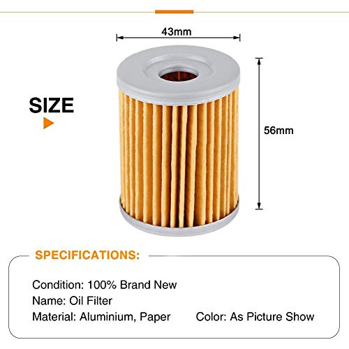 Compatibile: i nuovi filtri dell'olio per motociclette e i filtri dell'olio offrono una migliore risposta dell'acceleratore e, in definitiva, migliorano le prestazioni. Filtro olio moto nuovo di zecca di alta qualità per Suzuki DRZ125 DR200SE RV125 LTZ250 LTF250 Ozark AN250. Si prega di confermare che l'assemblaggio è corretto prima di ordinare.