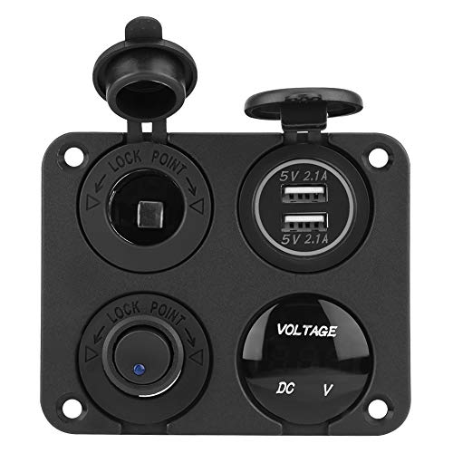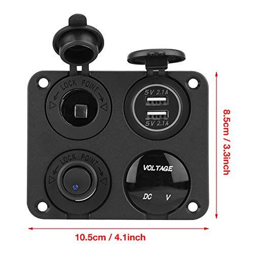 Fydun 4 Gang ON/OFF Interruttore a levetta Pannello Dual USB Caricabatterie Accendisigari Voltmetro(Luce blu)