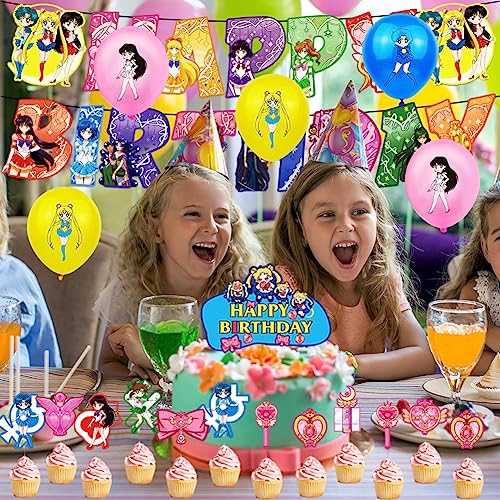 FYDZBSL Sailor Moon Decorazione per Feste Compleanno Palloncini di Feste Sailor Moon Compleanno di Decorazione Sailor Moon Theme Feste Palloncino Striscioni Cake Topper