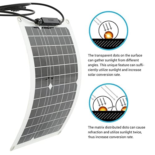 Fyearfly Pannelli solari, Pannelli solari 30W 18V Silicio monocristallino Carica efficiente Resistenza agli Urti Caricabatterie per Pannelli solari per Yacht all'aperto