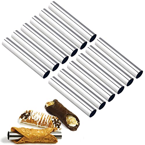 Cannoli Stampi:Stampo con design smussato per un facile utilizzo.Perfette per riempirle di tonno, melanzane, purè di patate, guacamole e altro.Questi stampi da forno per cannoli possono preparare dolci riempiendoli con crema pasticcera, budino e gelati.è un buon strumento fai da te da riempire con la tua ricetta preferita.