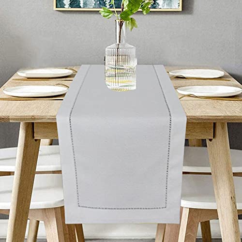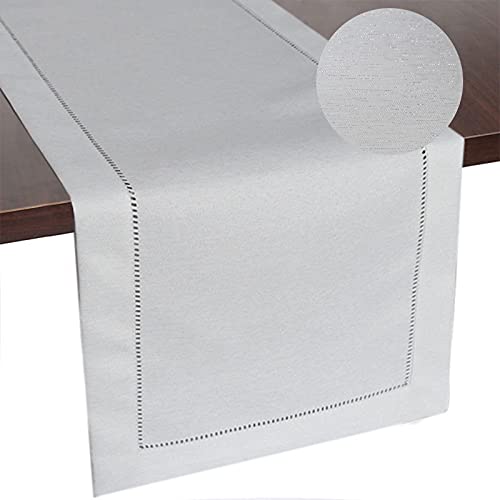 FYJS Runner da Tavolo in Seta Argento con Ricamo in Lino, Runner da Tavolo Natalizio, utilizzato per la Decorazione in Varie Scene, 36x183cm,Semi-Sbiancato