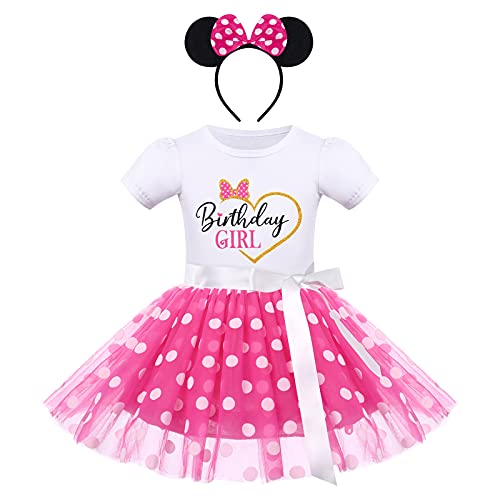 FYMNSI Bambino Ragazze Vestito Tutu a Pois Principessa Minnie Costume di Natale con Fascia Body in Cotone Manica Corta Set di Abiti Canaval Ceremonia Compleanno 12 Mesi,6 Anni, rosa acceso, 18-24 Mesi