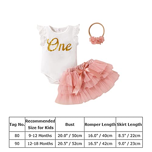 FYMNSI Body a maniche lunghe per il primo compleanno, con gonna e fascia per capelli, set di abbigliamento da 3 pezzi, Rosa - One, 12-18 Mesi