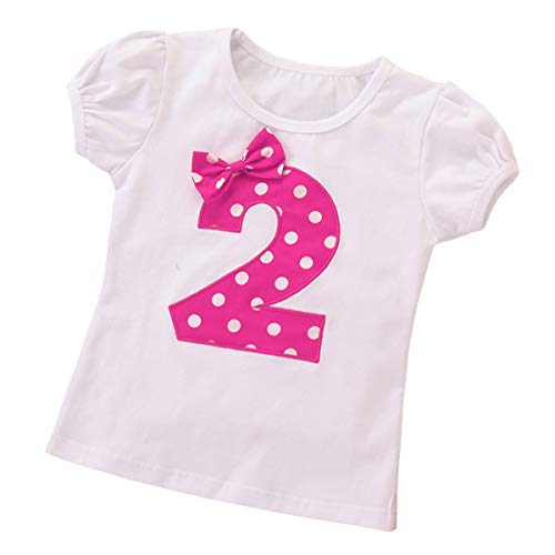 Maglietta bianca a maniche corte: maglietta estiva a maniche corte, con scollo rotondo, progettata con numeri arabi "1", "2", "3", "4", "5", significato speciale per le ragazze primo, secondo, terzo, quarto, quinto compleanno e un grazioso piccolo fiocco decorativo sulla parte anteriore