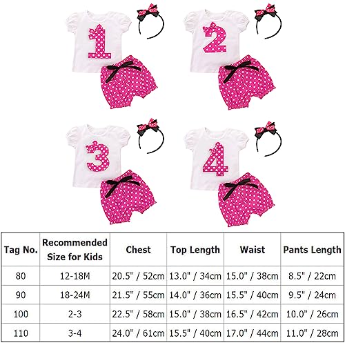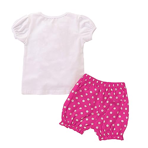 FYMNSI Costume da Minnie, per bambini da 1°,2°,3°,4°,5° compleanno, stile retrò, a maniche corte, maglietta con pantaloncini e fascia per orecchie, Rosa 2° compleanno, 18-24 Mesi